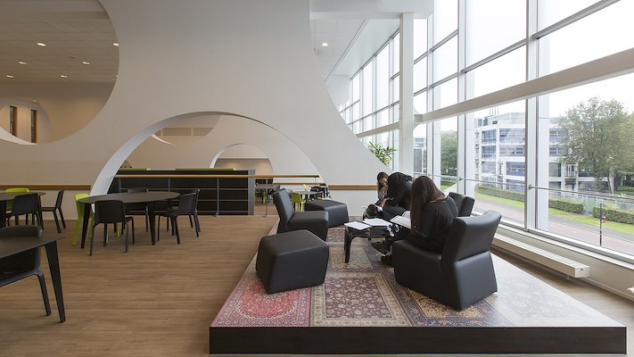 De verschillende plateaus zijn breed inzetbaar en kunnen afzonderlijk van elkaar worden gebruikt en omgebouwd voor lezingen, presentaties en diploma-uitreikingen. Verder zijn er op praktisch gebied het aantal beschikbare stopcontacten sterk toegenomen samen met een goede wifi-dekking, zodat er naast extra lunchplekken ook goed uitgeruste werk-, leer- en overlegplekken zijn bijgekomen.