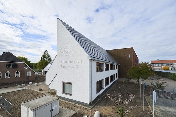 Het gemeentehuis van de gemeente Lingewaard, Gelderland, raakte in 2018 ernstig beschadigd. Afgelopen zomer is het verbouwde gemeentehuis, gesitueerd in Bemmel, heropend.