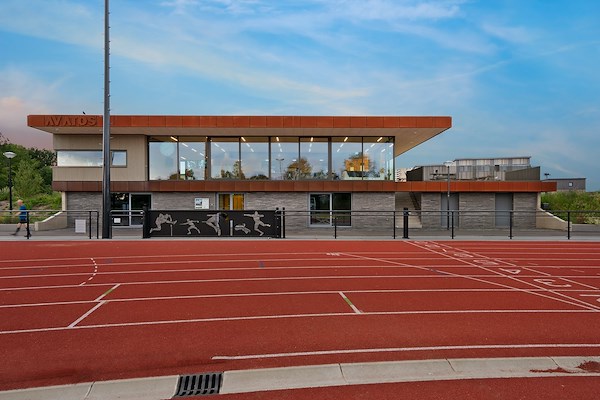 Vanuit dat perspectief ontstond het idee om een tribuneheuvel te ontwerpen waarvandaan kan worden uitgekeken op de atletiekbaan en het park. Door deze ingreep wordt de vereniging en de atletiekbaan integraal onderdeel van het park en dient zo meerderen doelen. De heuvel is een ligweide maar camoufleert ook een deel van het programma. Door deze benadering zijn we er in geslaagd het clubgebouw als een paviljoen in het landschap te plaatsen.