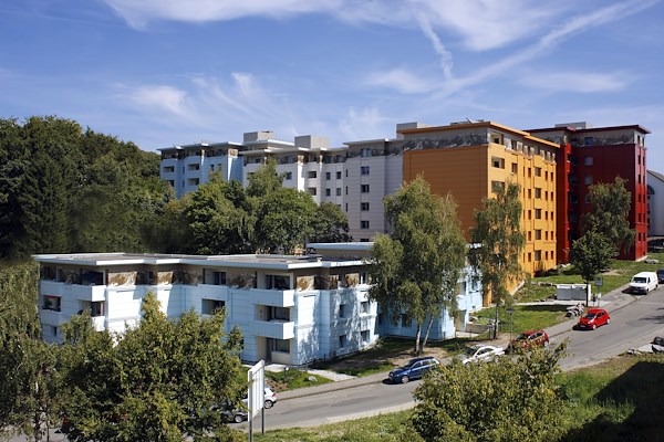 In the 1960s and 1970s, industrial, serial prefabrication facilitated large; functional living space for a small budget and very quickly. But even then the first mass housing developments suffered from the stigma of monotony, anonymity and social exclusion. Later on, when many of the buildings were getting older, anyone who could move out did so. And this was indeed the case at a residential complex on a hill on the outskirts of the city of Hagen in Bergisches Land, in North Rhine-Westphalia, Thirty years after completion, 40 of the 175 flats were standing vacant. Only a complete refurbishment and a major image makeover could do anything to rectify the situation. The original floor plans were good so no big alterations were made. The exterior, however, was renovated to fulfil passive-house energy standards and the architects also radically modified how the façade looked. The architects did away with the unattractive modern architecture and opted for a classical façade design. They divided the height of the building into a base floor, the piano nobile and top floor, and created a façade with a historical character. They clad the existing building in large-format ALUCOBOND® panels with wide joints, formed narrow cornices in the base section and pilasters on the upper floors. The architects also divided the large development into individual blocks varying their colours using ALUCOBOND® panels in warm special colours. Each block was fitted with an elegant entrance, featuring a generous porch roof and a glass stairwell with brass coloured profiles and ALUCOBOND® cladding in the same colour. The entire exterior space was also given a new topography with granite paved pathways creating a new impression. The architects are daring enough to try something new and whimsical: a frieze-like mountain scene is printed on the top storey façade. The delicate, sepia mountain scene is a reference to the mountains in Bergisches Land, which, at least for the local population, are just as important as the highest mountains. Architecture purists may turn up their noses at the historical associations, but old and new residents alike appreciate that they have been taken seriously in their desire for quality which is customised not just commonplace.