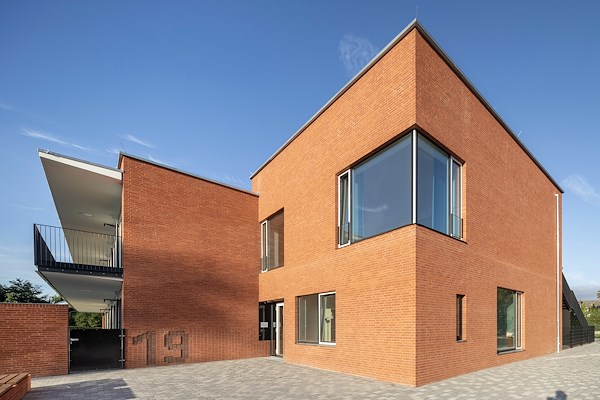 Baksteenpaviljoen met high tech beton