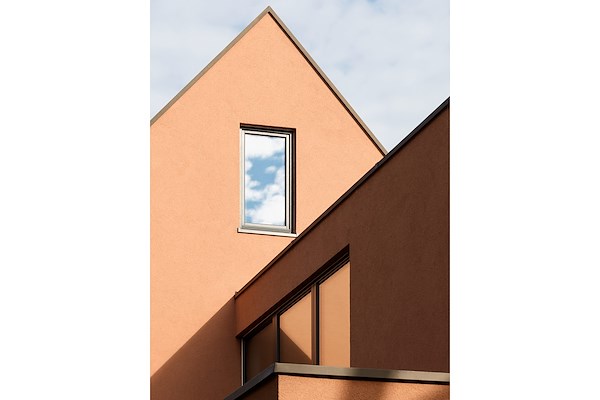Het woonhuis is geheel prefab in houtskeletbouw gebouwd. Binnen enkele dagen was de woning wind- en waterdicht. De buitengevel bestaat uit lariks delen en aards stucwerk, welke aansluit op de uit baksteen opgetrokken omgeving.