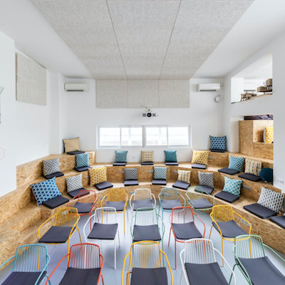 Dit bedrijfspand van 240 m² is bedacht en ontworpen door experts in Design Thinking en Design Sprint. De keuze voor naturelle en witte kleuren geeft ruimte aan creativiteit.
