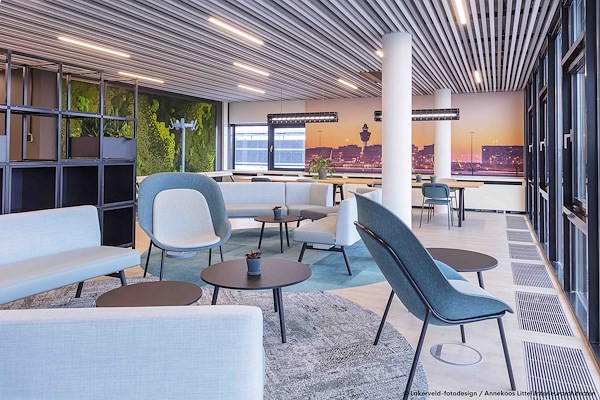 Inpassing van het nieuwe werken in de bestaande gebouwen laat zien dat als de aangepaste en moderne huisvestingsvisie wordt doorgevoerd, de toekomstige groei en flexibiliteit binnen de huidige gebouwen kunnen worden opgevangen. HEVO ontwikkelde samen met LVNL het PVE voor het nieuwe huisvestingsconcept. Dit lukt niet met het bestaande huisvestingsconcept (vrij gesloten met cellenkantoren). Op dit moment voelt het bestaande concept als ‘vol’ en zijn de vergadermogelijkheden beperkt. Gevolg hiervan was de vraag aan het bureau Annekoos Littel om het huisvestingsconcept vorm te geven in samenwerking met Hevo en de Lucht Verkeersleiding. Met als opdracht dit concept als een pilot te realiseren op de derde verdieping van gebouw. Een ontwerp werd door Annekoos Littel gemaakt vanaf ruwbouw tot en met de laatste accessoires. Oppervlakte is circa 1000 m2 BVO. Er diende rekening gehouden te worden met een strakke planning, waarbij een kritische blik van de indeling in relatie tot de installatietechniek of aanpassing van de installatie paste binnen de gestelde tijdskaders. De oplevering en realisatie is gepland in Q3 2020.