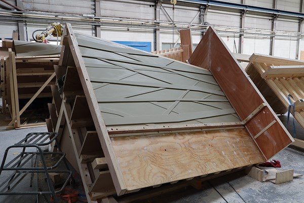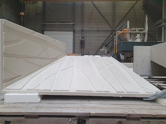 Van de mal tot aan het complete element wordt in huis geproduceerd. Onze eigen modelmakerij heeft alle mallen ten behoeve van de productie van de elementen gemaakt. Voor het takkenpatroon hebben zij ook de structuurmatten gemaakt. Door de in huis productie kunnen we snel schakelen en een hoge kwaliteit waarborgen.