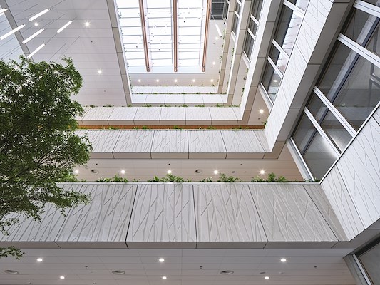 De kernwaarden en identiteit van Wageningen University & Research komen terug in het ontwerp van het gebouw. Het motto: ‘Improve the quality of life’ is vertaald naar een duurzaam en gezond gebouw. Voor de gevels heeft LIAG gekozen voor een integraal concept. Horizontale gevelelementen omsluiten het gebouw en lopen via het atrium door. Van buiten naar binnen.