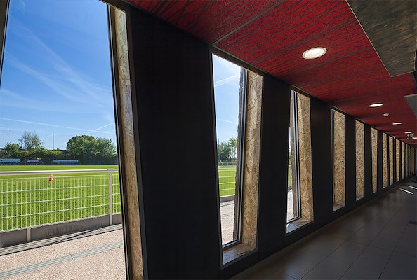 Om een goede akoestiek te garanderen en de ruimte een mooi interieur te geven is er gekozen voor Organic Creative houtwolpanelen. Organic Creative is gebruikt om het verhaal van het gebouw te versterken. Het extrieur van het gebouw is geïnspireerd door een rugbyteam tijdens een scrum. Voor het interieur is gekozen voor twee designs: Vegetal rhythmics & Woods. Hiermee wordt de strijdkracht van het team weergegeven.