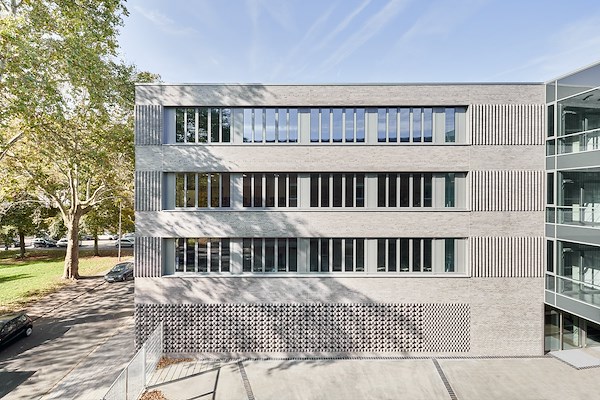 Bij de uitbreiding van het Humboldtgymnasium in Keulen haakte architectenbureau Numrich Albrecht Klumpp aan op de na-oorlogse baksteenarchitectuur van het bestaande schoolgebouw. De zachte grijstonen van Hagemeistersortering „Island BA+FU“ en bijzondere metselverbanden met vormstenen geven de façade een heel eigen expressie.