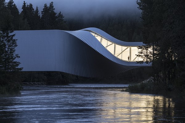 werd geopend in september 2019. Het is een hybride van brug, galerie en kunstobject die de Randselva rivier bij Jevnaker in Noorwegen weet te overbruggen. Bovendien sluit het een cirkelvormig pad af in de bestaande beeldenpark van het Kistefos Museum.