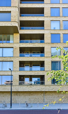 De roosters moeten niet alleen een hoge geluidwering hebben, maar ook een hoge luchtdoorlaat. “Spuien zonder in te boeten op akoestisch comfort dus”, vult Edwin Pelkman aan, projectadviseur bij Duco. “Een geluidluwe buitenruimte was niet verplicht, een geluidluwe gevel was dat wel. Omdat een dove gevel niet vereist is konden verschillende alternatieven met elkaar worden vergeleken.” Adam Smit en Joris Deur van ZZDP Architecten vullen aan: “Akoestische muurroosters kregen de grote voorkeur boven traditionele oplossingen zoals afgeschermde balkons of gebouwgebonden geluidsschermen. We verkozen om hoogwaardig metselwerk in de vlakke gevel op te nemen. Het element Amsterdamse School vinden we terug in dat metselwerk, verticaal opgebouwd in de plint en tussen de ramen verdeeld in verspringende horizontale stroken. De roosters zijn opgenomen in de gevels die aan de loggia’s grenzen.”