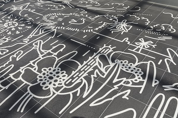 Liemburg: “Je kunt het geheel van het beeldverhaal niet overzien. Je ziet alleen dat waar je staat en kunt iedere keer weer nieuwe dingen ontdekken. Het was een uitdaging; de hoeveelheid details die ik namelijk kan aanbrengen in mijn werk, is proportioneel gekoppeld aan de techniek die ik gebruik. De beelden die ik had en scande, moest ik opnieuw tekenen, rekening houdend met de uiteindelijke uitvoeringstechniek van het aquajetten. Dat is het onder enorm hoge druk snijden van tegels met een dun straaltje water vermengd met superfijn zand. In het begin zat ik er nog wel eens naast qua schaalverhoudingen. Echter, door met alle betrokken partijen, zoals QKunst, Mosa en Mutsaerts, de verschillende proefopstellingen te evalueren, wist ik hoe ik de schaal moest veranderen om de voorstelling herkenbaar te maken.