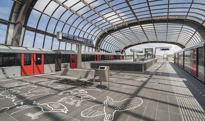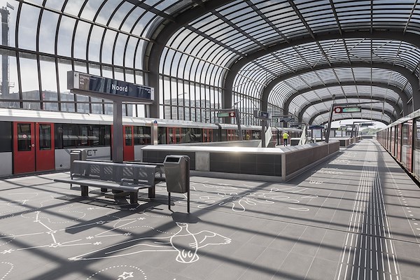 Benthem Crouwel Architects stond garant voor de ontwerpen van zeven stations van de Noord/Zuidlijn. Joost Vos, architect: “Onze visie op dit project was dat reizigers zo snel mogelijk verbinding moeten kunnen maken tussen perron en stad. Mensen houden niet van ondergrondse ruimtes. Het maakt ze onzeker en dat heeft sterk te maken met oriëntatie en veiligheid. Oriëntatie op daglicht is dus erg belangrijk en daarom hebben we dat diep in de stations laten doordringen, ondersteund door kunstlicht.