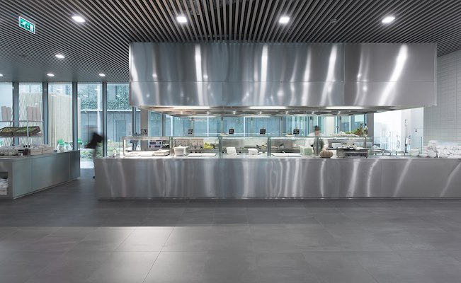 Unieke tegels die alles samenbrengen“De Mosa-tegels die we uitkozen, de 216 V en 216 XT Core Collection Terra, hielpen ons de connecties binnen het complex verder te versterken. We gebruikten de tegels op de begane grond, zowel binnen als buiten. Hun hoge kwaliteit, consistente kleur en grote formaat (van 60 x 60 centimeter) zorgen voor rust en benadrukken eens te meer de ruime opzet van het gebouw. We waren niet alleen onder de indruk van het product, maar ook van de commitment en klantgerichtheid van Mosa. We verlangden veel van ze.