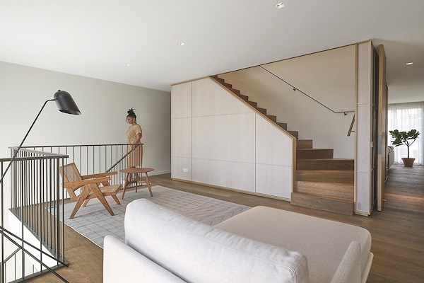 Bijzondere aandacht verdient ook de achterzijde van de Vertical Lofts: om het woonoppervlak te vergroten hebben de architecten de trappenhuizen volledig buiten het gebouw geschoven. De trappen vormen onderdeel van de balkons en bieden zo meer open leefruimte. In het midden in de kleine kern liggen de installaties en de liftschachten, esthetische wandmodules maken een flexibele indeling mogelijk. Een rustig interieurconcept, primair gericht op duurzaamheid, kenmerkt de negen appartementen: zowel binnen als buiten ligt de focus op materialiteit. Beton en warm hout, marmeren oppervlakken en lichte kleuren creëren lichtheid en onderstrepen het open karakter.