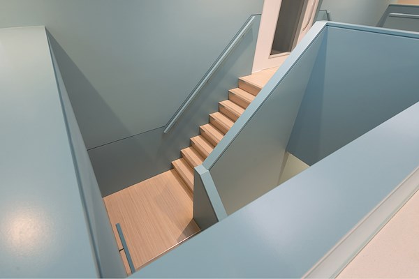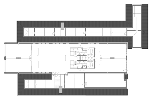 Het oorspronkelijke H-gebouw is in zijn oude luister hersteld en uitgebreid. Het meest in hetoog springend zijn de nieuwe kozijnen, die weliswaar in aluminium maar in overeenstemmingmet het oorspronkelijke ontwerp zijn teruggeplaatst. In de kleurstelling is gekozen deopgave meer ton sur ton te benaderen om zodoende een harmonieus geheel te creëren.Voor de nieuwbouw hebben we het ons gepermitteerd enkele details aan te brengen. Zois er gekozen om het metselwerk aan de zijgevel in ritme terug te leggen en uit te latenspringen ter plaatse van de larikshouten voorgevellamellen. De zinken daklijsten vinden hunoorsprong en aansluiting op de dakgoten die rondom overgaan in de oudbouw. Binnen waser de ruimte om een geheel eigen sfeer te realiseren. Dit is gedaan door de zelfde warmelarikshouten kleur toe te passen voor de kozijnen. De accentkleur is een zacht blauwgrijs ende vloer een neutraal betongrijs. Kasten, garderobes en keukens zijn zorgvuldig ingebouwdin de kern en de trappen zijn voorzien van solide lambriseringen.