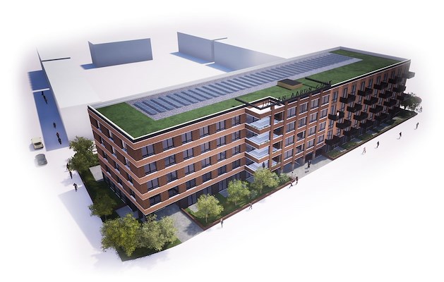 Dit is onder andere te zien aan het grote aantal zonnepanelen en het sedumdak. Het groene dak helpt bij het opvangen en bufferen van hemelwater, maar heeft ook een koelend effect op het woonklimaat in het gebouw. Verder is zoveel mogelijk natuur inclusief gebouwd, in de vorm van gevelnestkastjes, extra groen en speciale vogel- en insectenfaciliteiten in de tuin.‘