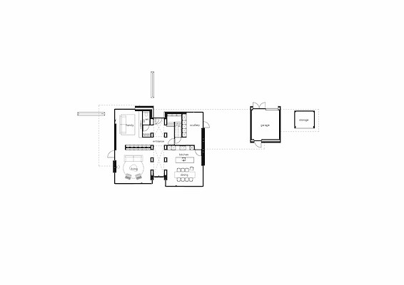Om warmteverlies te voorkomen is de hoeveelheid glas op het noorden beperkt gehouden, maar verder vormt de begane grond een geheel met de omgeving. De schuifpuien aan de achterzijde hebben dezelfde slanke belijning als de ramen. “Dit biedt de bewoners de mogelijkheid om de terrassen buiten bij de zitkamer en eetkamer te betrekken.” Doordat de glaspartijen iets verzonken zijn aangebracht in de façade ontstaat zowel optisch als qua lichtintensiteit een zachte overgang.