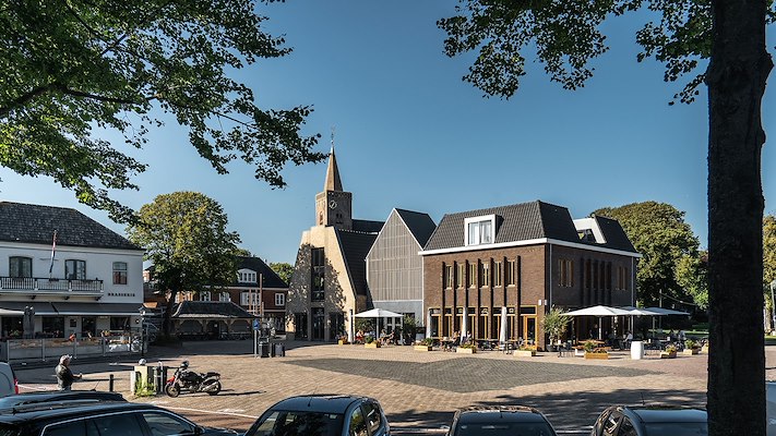 GeO architecten heeft met Aannemingsbedrijf A.Tuin bv de winnende inschrijving vervaardigd. Het ontwerp is gebaseerd op een parcellering van het ensemble, waarbij op eigentijdse wijze is gestileerd uit de markante bouwstijlen van het eiland. Het oude raadhuis van eind 19e eeuw is als inspiratie gebruikt voor een van de percelen en vormgegeven als reminiscentie. Door de serre en het buitenterras geeft dit wit gekeimde pand een nieuwe kwaliteit aan deze openbare ruimte. Het pand op de zuidwesthoek van de locatie is geïnspireerd op het “Polderhuis”, een fraai voorbeeld gelegen naast de kerk van de vroeg 20e eeuwse moderne architectuur met diverse Art-Deco ornamentiek.