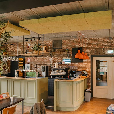 Café, restaurant en feestlocatie Bos & Co was op zoek naar akoestische oplossingen met een esthetische meerwaarde. Eigenaar Mark Storms kwam zo uit bij de akoestische houtwolpanelen van Organic. Het natuurlijke karakter van de houtwolpanelen past goed in de ruimtes. Bovendien blijkt uit geluidsmetingen dat het akoestisch comfort aanzienlijk is verbeterd na installatie.