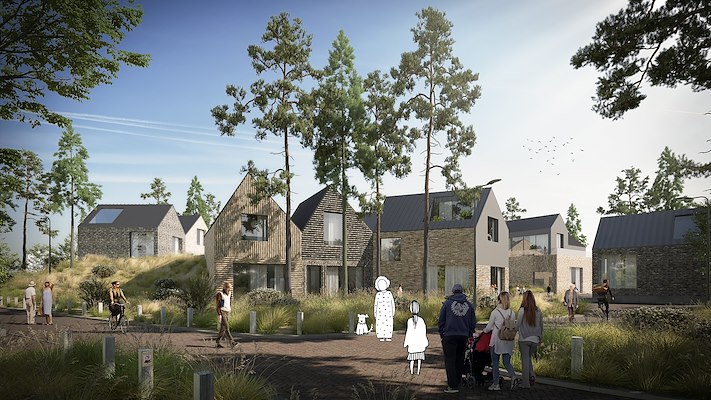 De ontwerpvisie van Vakwerk zet in op het behouden van alle landschappelijke kwaliteiten van de locatie en het versterken ervan. Door een deel van de functies onder het duin te leggen ontstaat een natuurlijke inpassing van het woon-, zorg en welzijnsprogramma. Het hoogteverschil van ca. zes meter biedt voor de woningen de mogelijkheid om vanaf maaiveld alle entrees goed te bereiken. Dit is vooral gunstig voor de bewoners die minder goed ter been zijn. De binnentuin, het activiteitenplein, de buurtkamer en de zorgwoningen zijn allemaal op gelijk niveau aangelegd. Dat maakt de toegankelijkheid voor iedereen comfortabel en uitnodigend.