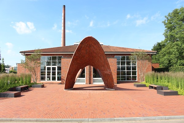 Baksteenfabrikant Hagemeister transformeerde de buitenruimte rondom de hoofdentree van de eigen productielocatie in Nottuln tot levendig 'portaal' voor medewerkers en klanten. Het terrein kreeg een nieuwe routing en riante ontmoetings- en verblijfsplekken. Blikvanger in de heringerichte buitenruimte; het ultradunne gebogen baksteenpaviljoen dat Hagemeister liet ontwerpen door architect Peter Böhm