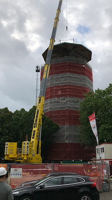 Het nieuwe ontwerp van architect Rob Moritz volgde alvast mooi de contouren van beide historische watertorens. En aangezien de aannemer ook de typerende kopergroene puntkoepel in ere wou houden, zocht hij ook daarvoor een geschikt alternatief.