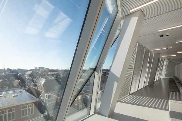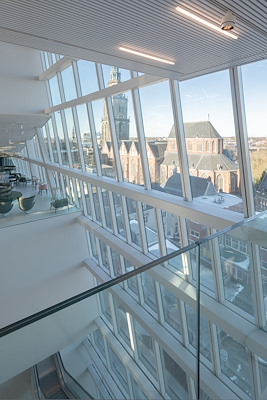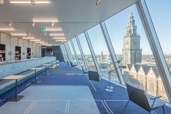 Het Forum in Groningen vlak achter de Grote Markt heeft een bijzondere vorm met afgeschuinde vlakken. De eisen ten aanzien van de aardbevingsbestendigheid vroegen hier om een zeer flexibele constructie en bijzondere detaillering. Dit heeft geleid tot een unieke projectoplossing voor de aluminium geveldelen, die soms voorover en soms achterover zijn geplaatst. De grote en zware elementen zijn bovendien structureel beglaasd.