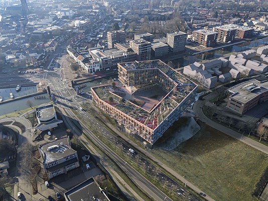 De Brugwachter is een iconische woonkathedraal met een collectieve, samenbindende identiteit. De diversiteit aan appartementen en collectieve functies in het gebouw bieden ruimte aan verschillende levensstijlen. Iedere bewoner beleeft en gebruikt het gebouw op een geheel persoonlijke manier. Het hoogteaccent aan het einde van het daklandschap vormt een ‘oog’ naar de stad. Hier opent de gevel zich met een bijzonder programma naar de stad. Hier is ruimte voor een bijzondere invulling zoals een wintertuin met klimwand, zodat het groene karakter van het gebouw versterkt wordt. Aan de binnenzijde van het gebouw ontstaat een ruim omsloten binnenplein, dat zich op verschillende plaatsen opent naar de context. Door te werken met een driedimensionaal modulair grid zijn verschillende configuraties van woningen mogelijk. Het gebouw heeft een energie-opwekkende gevel van Solarixpanelen.