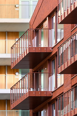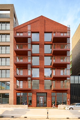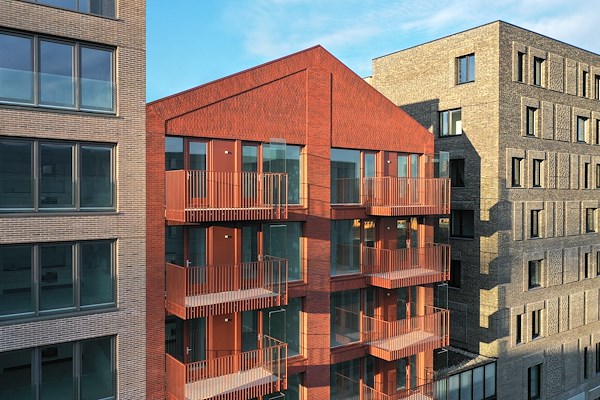 Woongebouw Red Ruby, ontworpen door Bureau Fraai, biedt ruimte voor huurders met een middeninkomen op het industriële Oostenburger Eiland in Amsterdam.
