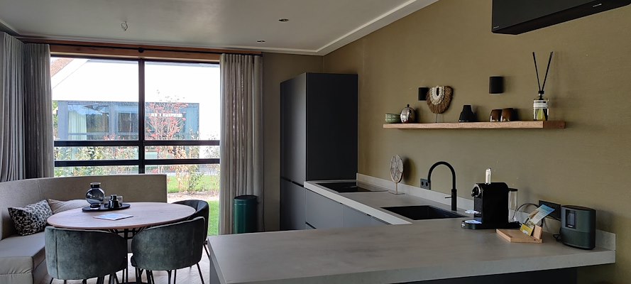 De vakantiewoningen zijn voorzien van een eigen wellnessruimte en beschikken over alle gemakken voor een aangenaam verblijf. Om zoveel mogelijk daglicht binnen te krijgen is er door de architect gekozen voor grote raampartijen waarbij in de slaapvertrekken shutters zijn geplaatst voor verduistering.