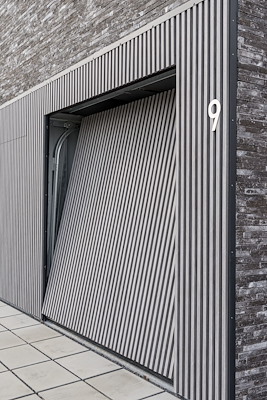 De voorgevel van de villa moest 1 strak geheel vormen. De garagepoort en deur zijn daarom naadloos ingewerkt in de Mato profielen. Naast de ramen zijn profielen geplaatst om ze optisch breder uit te laten komen.