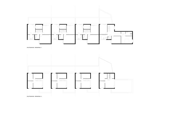 Door in de verspringende volumes ook ramen in de zijkanten te plaatsen, oriënteren de individuele woningen zich niet alleen naar de straat zijde, maar ook in de beide richtingen van de rijksweg.