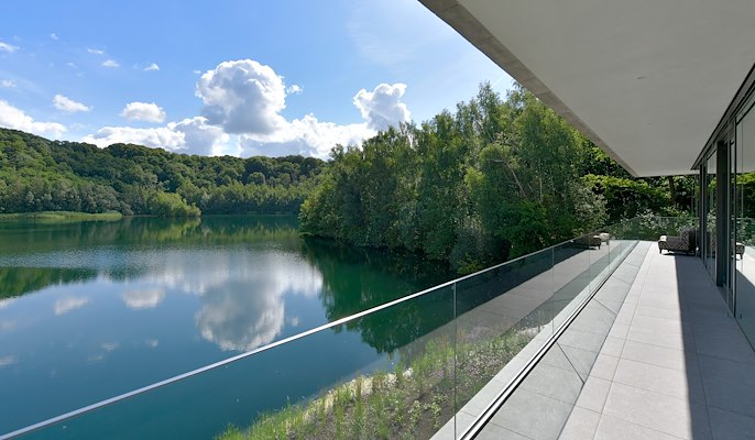 Aan het meer onder aan de Grebbeberg in Rhenen brengt MIX architectuur landschapsbeleving en privacy samen in Villa M. Ook duurzaamheid en luxe zijn vakkundig op elkaar afgestemd.