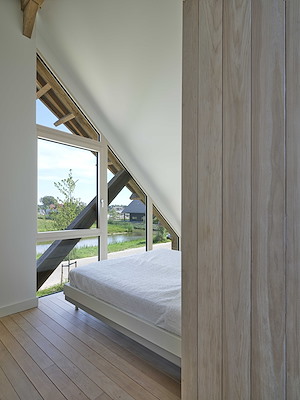Het huis is een stapeling van houten balken waardoor vakmanschap en materiaal tot uitdrukking komen in de details. De spantconstructie is met grote zorg geleverd en vervaardigd door NOESK.
