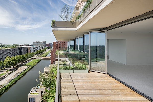 Wat alle glazen vouwwanden echter gemeen hebben, is de mogelijkheid van drempelloze opening over de gehele breedte van het balkon of terras. Zelfs in gesloten toestand maakt het systeem een maximale transparantie mogelijk dankzij de geringe aanzichtsbreedte van 99 mm bij het tussendetail. Zo opent de verdiepingshoge beglazing hele wanden, laat veel daglicht binnen en biedt een royaal uitzicht over de stad.