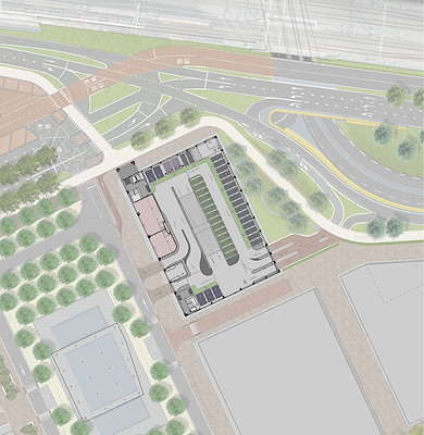 Parkeergebouw Berlijnplein - aanzicht vanaf busstation Leidsche Rijn Centrum