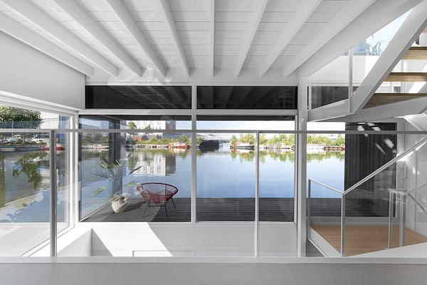 De drijvende woning kenmerkt zich door een dynamische variatie van ruimtes zowel binnen als buiten. Alle ruimtes staan in open verbinding met het atrium dat uit drie verdiepingen bestaat. De indeling voorziet in een split level verbinding naar een loggia terras net boven het waterniveau. Bewegend door de woning verschijnen telkens verschillende perspectieven en uitzichten. Het woongedeelte op de bovenste verdieping heeft een aangrenzend semi-gesloten terras.