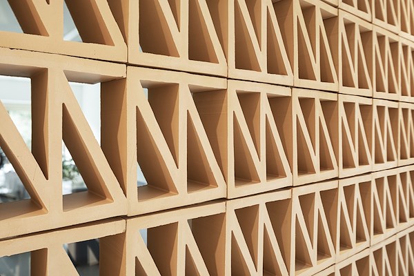Het creëren van de gelaagdheid tussen gebouw, materiaal, textuur, kleurgebruik en grafische elementen is een belangrijk uitgangspunt. De oplossingen moesten passen bij de huisstijlkleuren maar ook veelzijdig en duurzaam zijn. Door keramiek als een esthetisch element en accent toe te passen in wanden en meubels in plaats van constructief materiaal kregen we de unieke en bijzondere kwaliteit waar we naar op zoek waren. Het creëren van ronde elementen uit keramiek genereerde een verrassende, warme en huiselijke kwaliteit die ambacht en oog voor detail uitstraalt. De ronde vormen contrasteren mooi met de strakke architectuur.