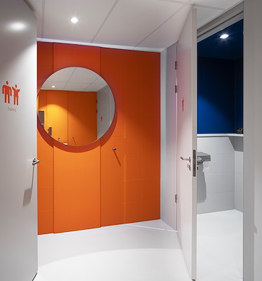 De grafische laag is doorontwikkeld op basis van de global standard van Osborne Clarke. Dit draagt bij aan wayfinding en sense of place. Voor het gender neutrale toilet is aanvullende signage ontworpen.
