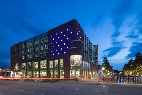 Naast de bibliotheek biedt het gebouw onderdak aan het Erfgoedcentrum, het Huis van de Duurzaamheid, een VVV-kantoor en een arbeidsbureau. Door deze functies uitnodigend en transparant op de begane grond en eerste verdieping te lokaliseren en zo de meer logistieke functies in te pakken, is het gelukt om hier die dynamische plek in de stad te creëren.