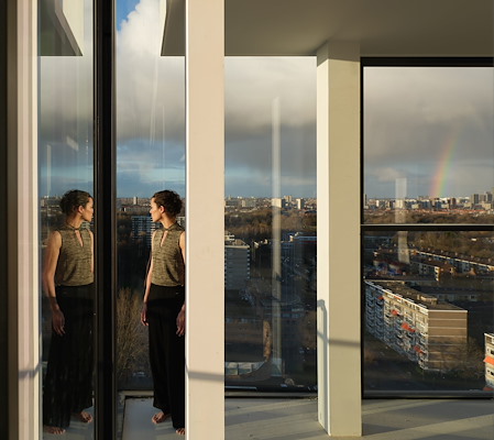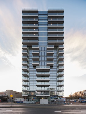 Tijdens het constructief onderzoek van het gebouw bleek dat de omtrek van de kelder onder het gebouw groter was dat de omtrek van de bestaande toren. Hierdoor was het mogelijk om het gebouw op te dikken en daarmee vierkante meters woonoppervlak op de verdiepingen erboven toe te voegen. De buitenschil van de bestaande kantoortoren is volledig verwijderd en vervolgens zijn de bestaande verdiepingsvloeren verlengd. Om de verlengde vloerranden heen, is een nieuwe huid van glas aangebracht. Deze nieuwe gevel, met glazen puien van vloer tot plafond, is geconstrueerd met gebruik van eenzelfde type kozijnprofiel voor zowel de horizontale schuiframen ter plaatse van de balkons, als de verticale schuifpuien, erkers en vast glas. Door de uniformiteit in de profielen ontstaat een subtiele dieptewerking in de gevel. Aan de kopgevels van de toren zijn uitstekende balkons toegevoegd. De subtiliteit van de vormgeving van pui profielen en de expressiviteit van de balkons dragen beide bij aan een sterke uitstraling, die refereert aan de naoorlogse architectuur. Het resultaat is een krachtig, karaktervol en maximaal transparant woongebouw, dat zowel in woonproduct als in uitstraling een verrijking is voor Rijswijk.
