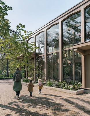 Het gibbonpaviljoen in ARTIS Amsterdam, ontworpen door ATELIERFRONT, is de nieuwste toevoeging aan het monumentale gebouwenensemble dat ARTIS rijk is. De natuurlijke habitat voor de mensapen, slingerend in hoge boomtoppen, inspireerde tot een open, houten constructie met de typologie van een boomgaard. Naast het transparante verblijf voor de gibbons, zijn een horecagelegenheid en werkruimte voor de verzorgers gehuisvest in de dichte gevels van het paviljoen. Het resultaat is een licht, elegant en duurzaam gebouw dat goed past bij ARTIS en deze slingerende mensaap.