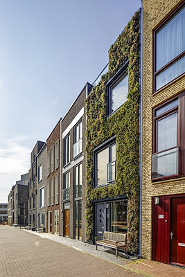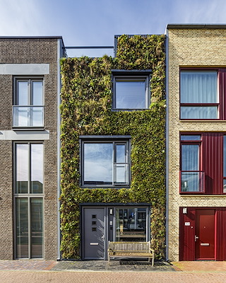 De meest bijzondere woning is toch die met de groene gevel. In het ontwerp van de groene gevel, dat tot stand kwam in 2017, het jaar van Mondriaan, is teruggegrepen naar de kenmerkende vlakverdeling waarmee de kunstenaar beroemd werd. De groene gevel zorgt niet alleen voor een bijzondere architectuur, maar stimuleert ook een duurzamere wereld met haar klimaatadaptieve en natuurinclusieve eigenschappen. Zo draagt een groene gevel bij aan luchtzuivering, een lagere omgevingstemperatuur, warmteregulatie en biodiversiteit in de stad. Bovendien voelen mensen zich prettiger in een groene omgeving.