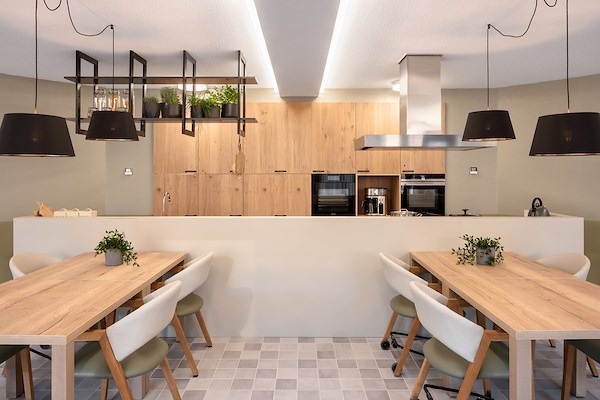 Als bureau hebben we het totale interieur vanaf casco ontworpen. In de uitvoering is gekozen voor een demarcatie waarbij het complete afbouwpakket niet door de hoofdaannemer maar door de opdrachtgever begeleid is, waarvoor we de projectleiding voerde. Mede hierdoor konden lokale partijen aangehaakt worden. Wat extra betrokkenheid gaf, maar ook meer binnen het gestelde budget gerealiseerd kon worden. Tot en met meubilair en zelfs accessoires is alles in 1 totaalvisie meegenomen.