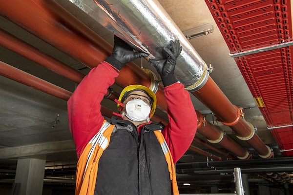 Verwerker Domstad Isolatietechniek werkt voor leidingisolatie vrijwel altijd met ROCKWOOL-producten, zo vertelt mede-eigenaar Stef van Beurden. Voor warmteleidingen is dat meestal ROCKWOOL 810. Voor koudeleidingen werkte het bedrijf één keer eerder met ROCKWOOL TECLIT. The Valley is voor Domstad Isolatietechniek het eerste grote project met TECLIT. “Met zo veel kilometer aan leidingen is dit gelijk ook heel groot. We werken continu op dit project met een ploeg van drie mensen, twee mannen en een vrouw. Dat is vanaf begin 2020 tot voorjaar 2021.”