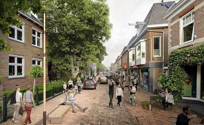 Met de transformatie van Het Kampje, dat nu een parkeerveld is, zorgen we voor een aangename, groene plek midden in het dorp, met hoogwaardige ruimte voor ontspanning en activiteiten. We beperken het doorgaand verkeer en richten rondom het plein autoluwe straten in. Zo ontstaat een groene dorpshuiskamer, met een fraai zicht op de eeuwenoude bomen van de begraafplaats Beth Haim. Daarnaast verbeteren we het haventje met nieuwe vlonders en een boardwalk. De Dorpsstraat ondergaat een transformatie met eveneens autoluwe straten en veel ruimte voor voetgangers. We gebruiken de lokale kleiklinker voor het gehele plangebied, afgewisseld met verharding in frisse kleuren. Met het weghalen van overbodige verharding verbeteren we de klimaatadaptie van de dorpskern.