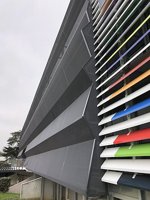 Het ontwerp, de fabricage en de installatie werden uitgevoerd door Lahille, een lid van het Serge Ferrari Expert-netwerk dat in de regio is gevestigd. "Een metalen structuur ondersteunt het doek, dat over een hoogte van 10 meter over buiten- en binnenranden wordt gespannen. Om deze afwisseling te reproduceren was een gemengd montagesysteem nodig, waarbij gegroefde profielen en in elkaar grijpende profielen werden gecombineerd. De structuur dient ook als doorgang voor technische toegang en creëert een bufferzone die helpt het broeikaseffect te beperken, naast het membraan zelf, dat de zonnestralen filtert. Naast het geboden thermische comfort heeft de gevel een zaagtandvorm die het gebouw een architecturaal cachet geeft," legt Lionel Reynié, directeur van de firma Lahille, uit.
