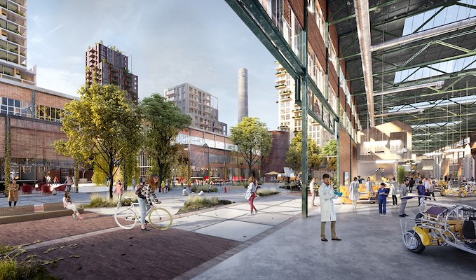 De structuur van de bestaande fabriek is als uitgangspunt genomen voor het nieuwe district. Het dak wordt van de fabriek afgenomen. De karakteristieke stalen vakwerkliggers en gevels worden gehandhaafd en vormen typerende inrichtingselementen in de gebouwen en in de openbare ruimte.