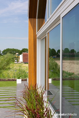 De woning is volledig geprefabriceerd in hout skeletbouw. Hierdoor is weinig bouwafval en is de woning volledig luchtdicht gebouwd. De woning heeft verder een lucht/water warmte pomp, wtw ventilatie en pv panelen, dit alles geeft de woning een extreem laag energieverbruik.