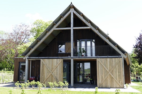 Zo is de voersilo omgebouwd tot buitendouche en hangen de drinkbakjes van de koeien nu in de toiletten. Niet om uit te drinken maar om je handen boven te wassen! Niet zo vreemd dus dat er gekozen is voor het kwaliteitshout van het uiterst milieuvriendelijke Royal Wood in de prachtige kleur Teer Bruin. Voor een mooi contrast is er voor de luiken gebruik gemaakt van hetzelfde hout in de kleur Neutraal.